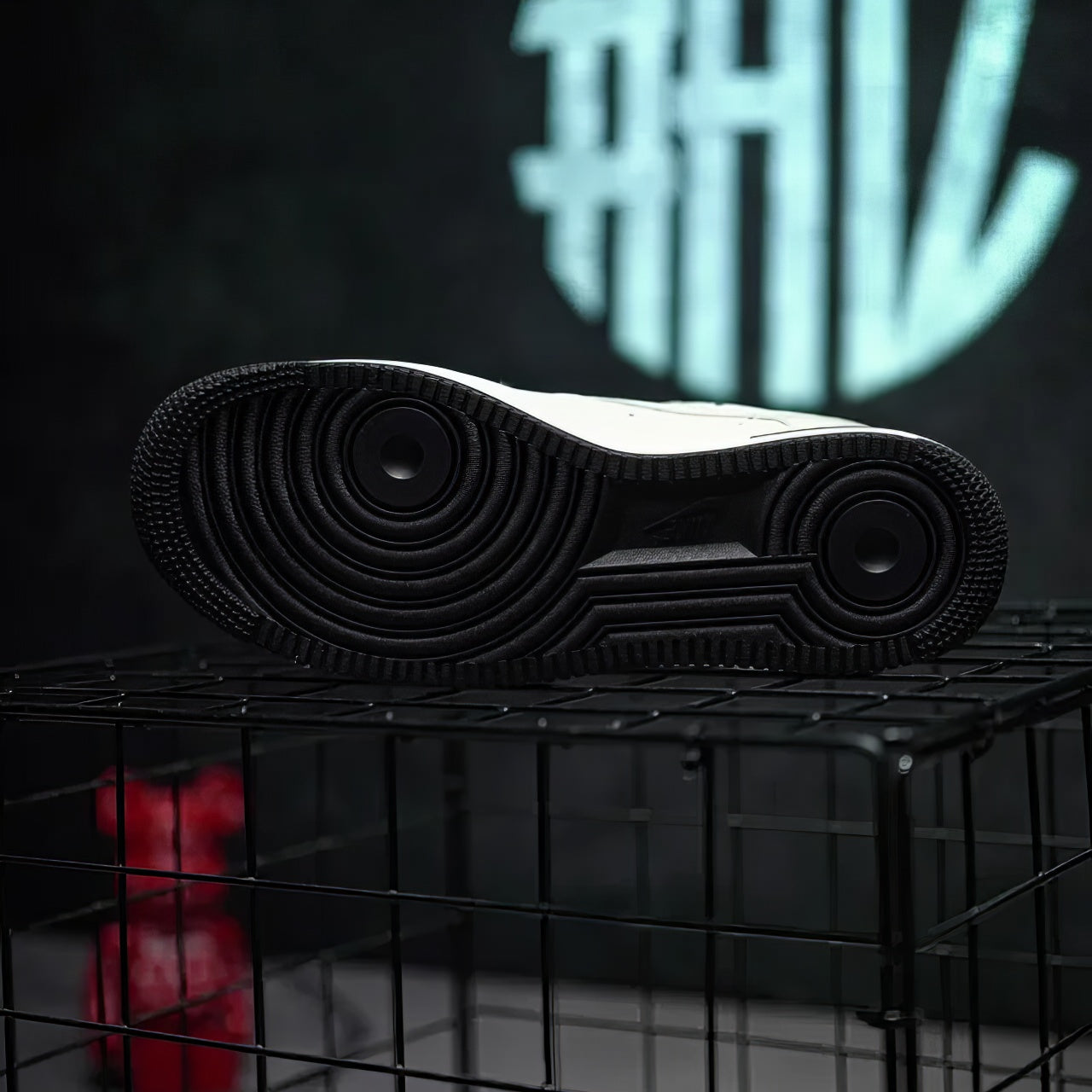 Custom Nike Air Force 1 sneakers customized with the "Hollywood Chrome Hearts" Theme