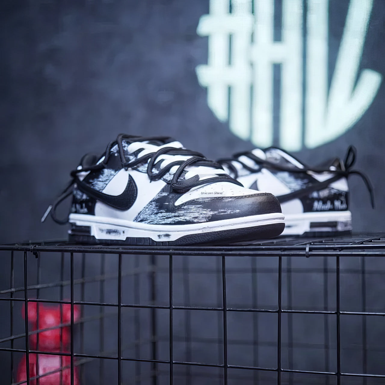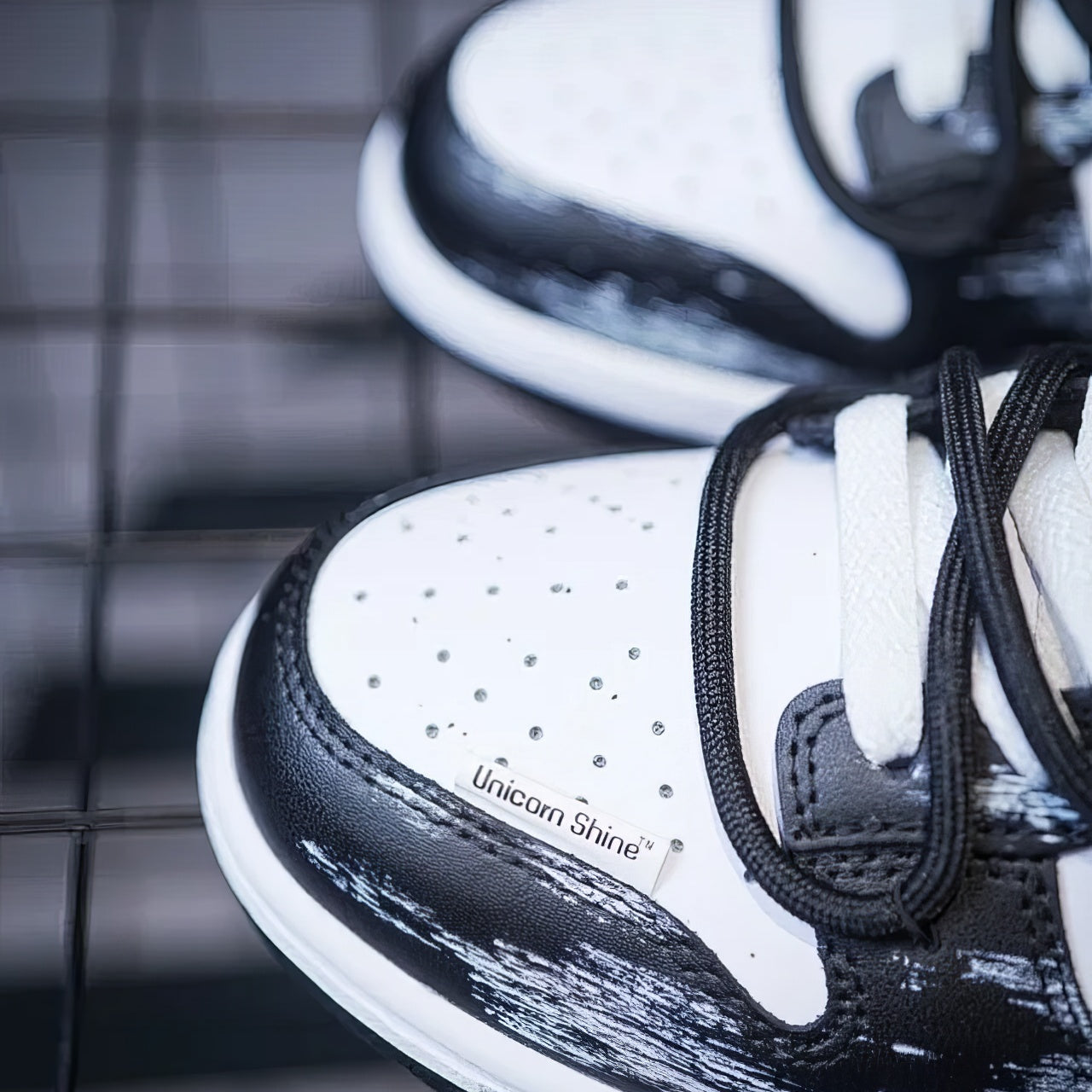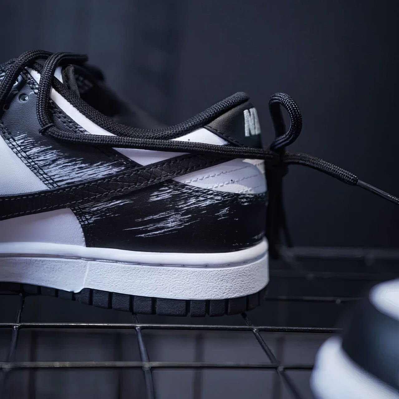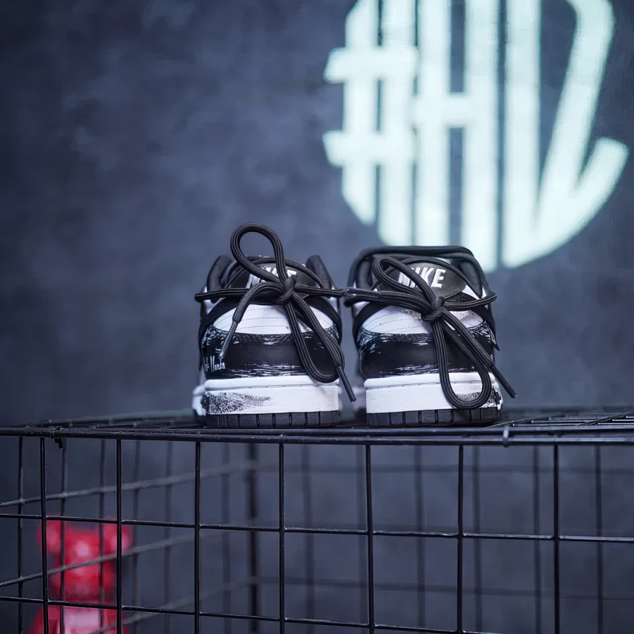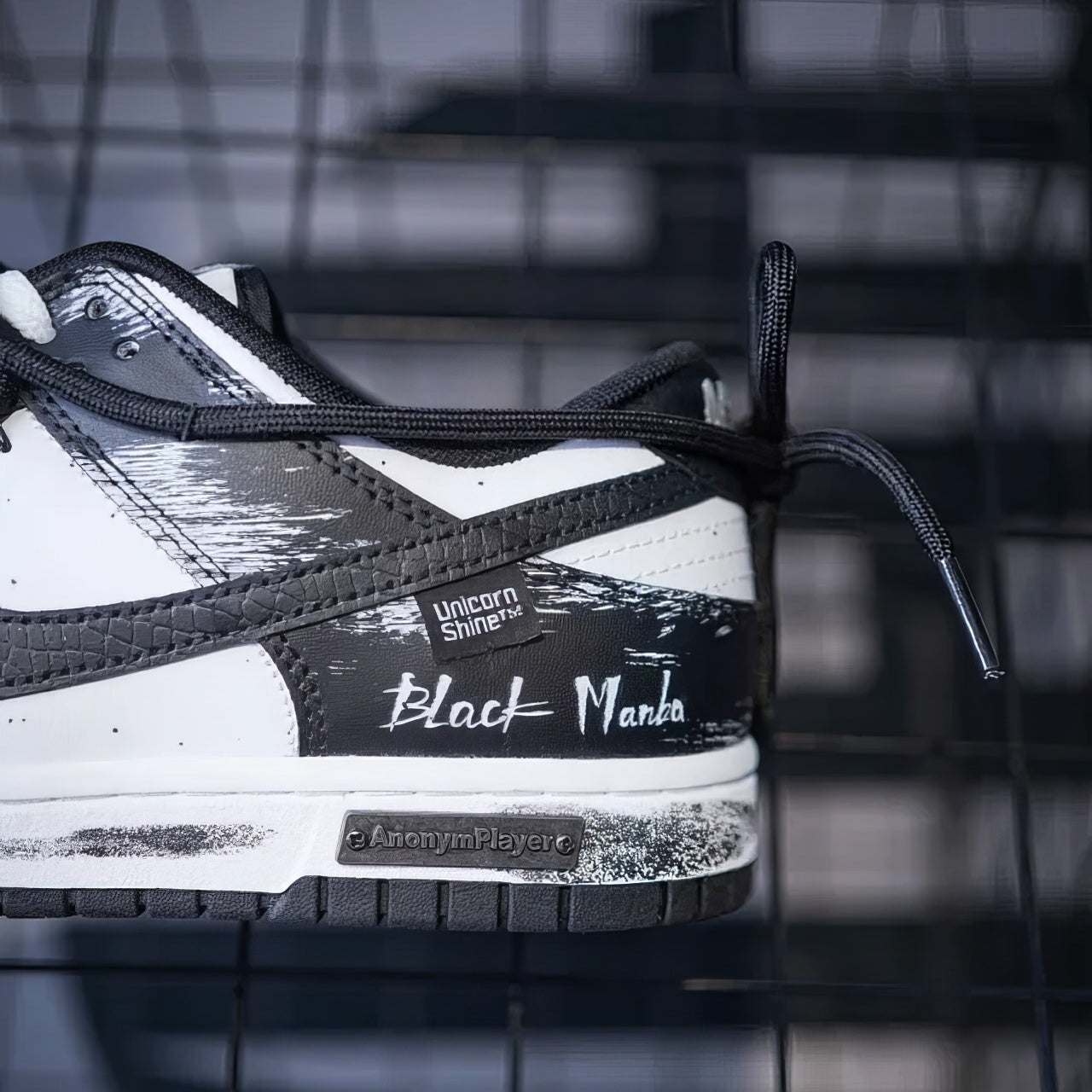 Custom Dunk sneakers customized with the "Black Mamba" Theme