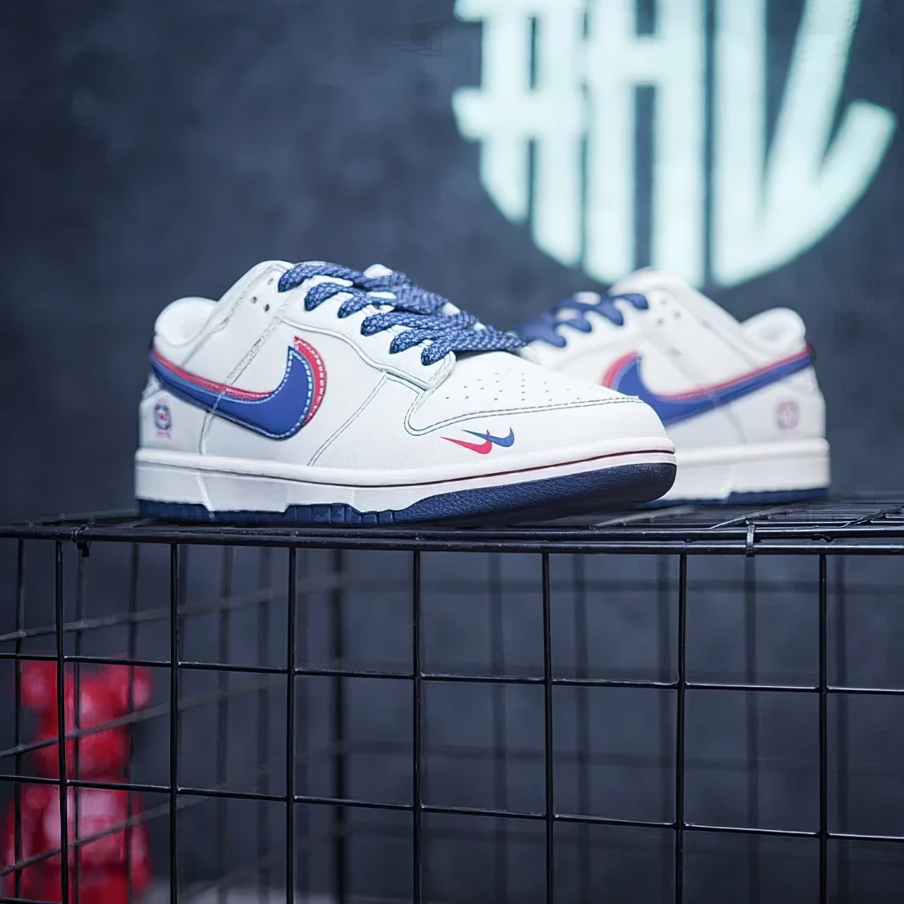 Custom Nike Dunk sneakers customized with the “Double Hook” Theme
